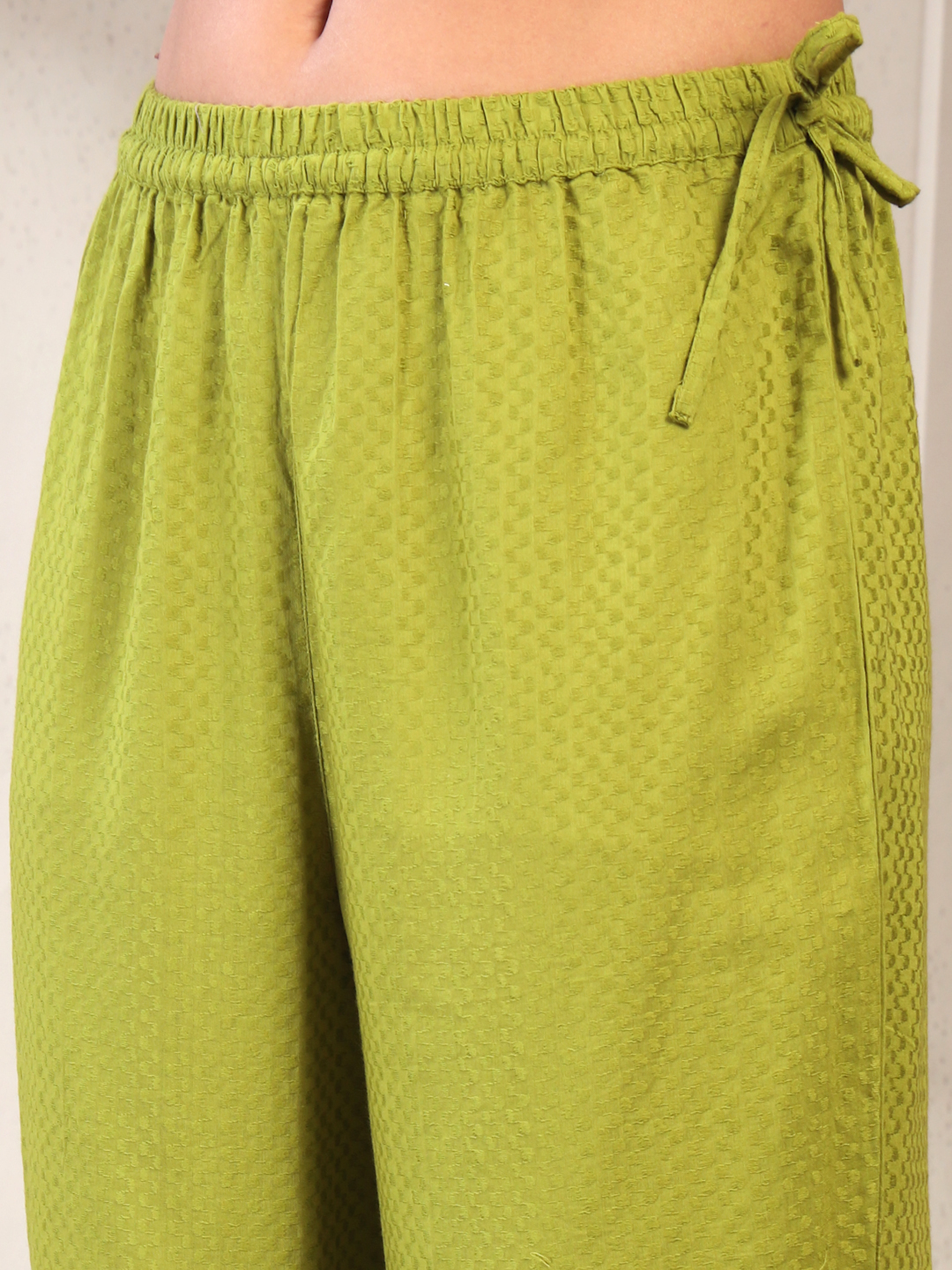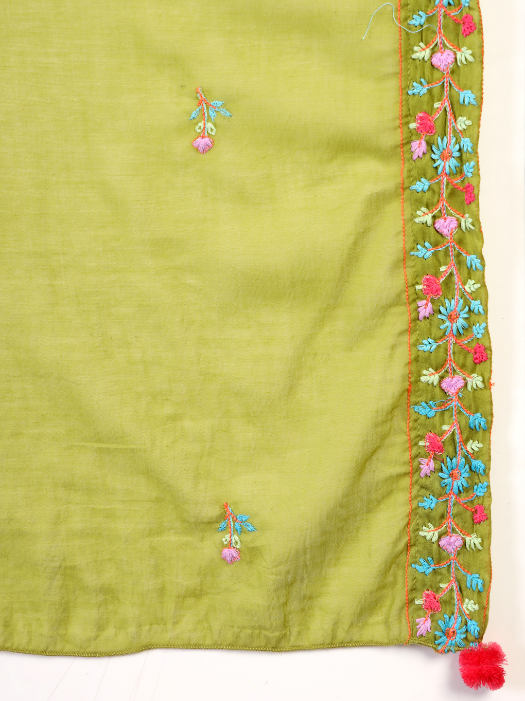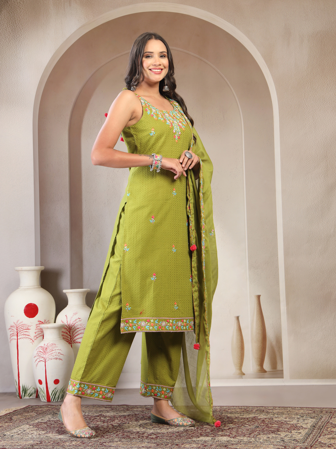 Women Green Embroidery Kurta With Trouser & Dupatta Set