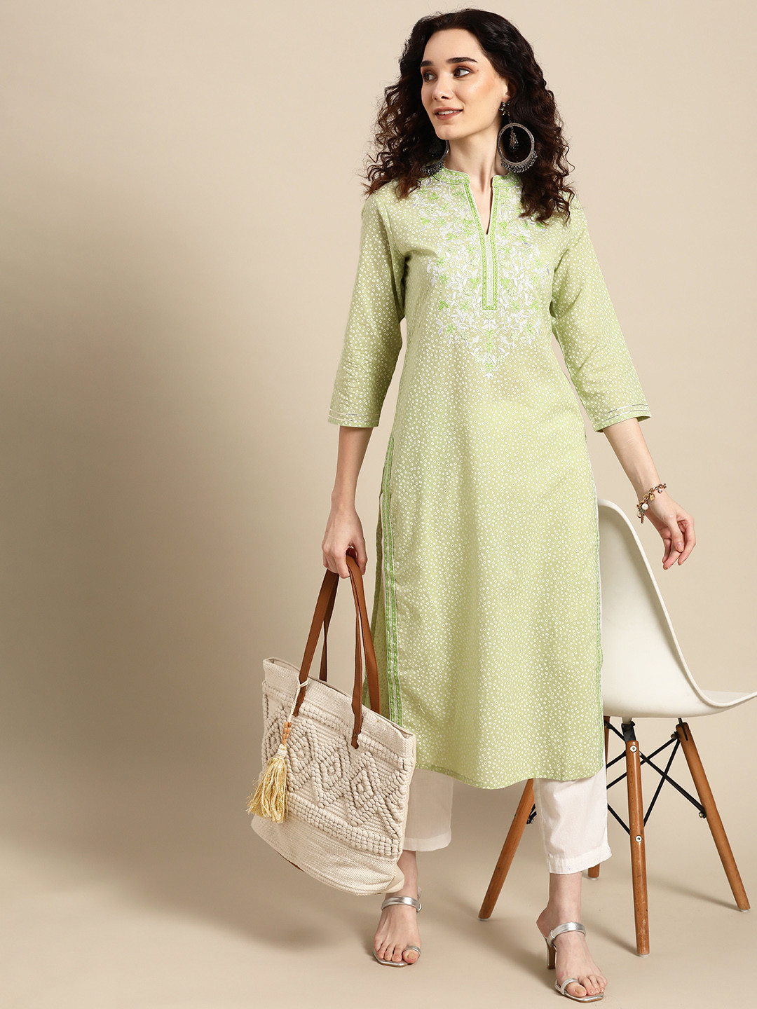 Refresh your ethnic wardrobe with this women green embroidered straight kurta crafted in soft breathable cotton fabric. Designed for comfort and elegance, it offers a clean silhouette ideal for office wear, casual outings and everyday traditional styling.