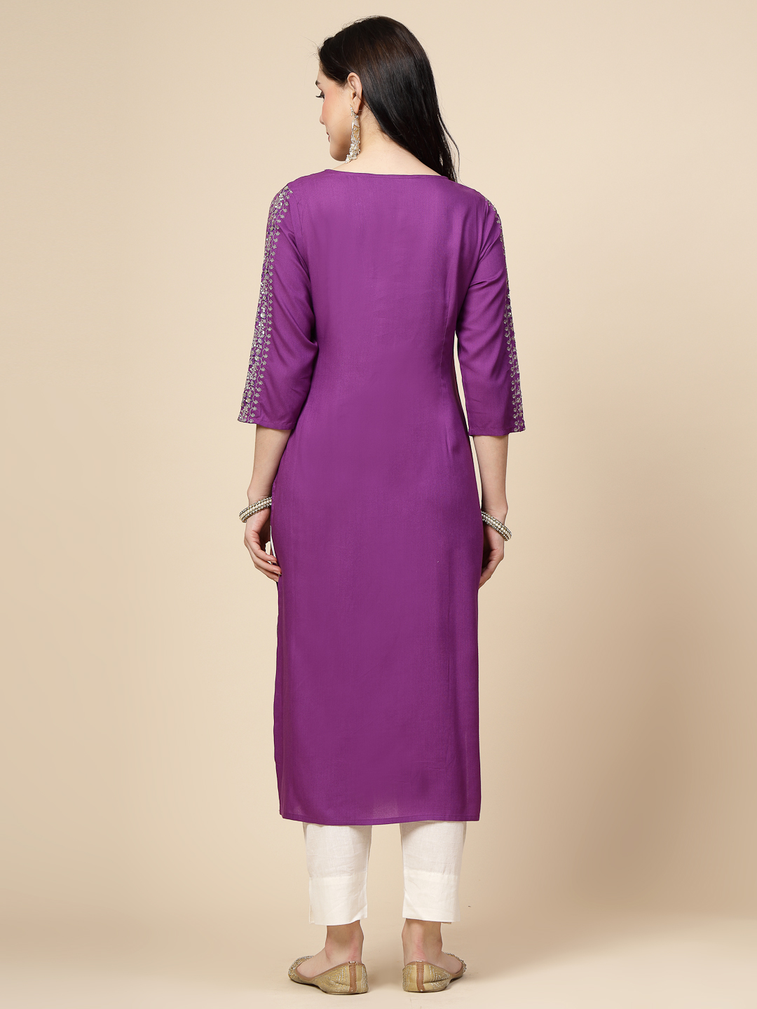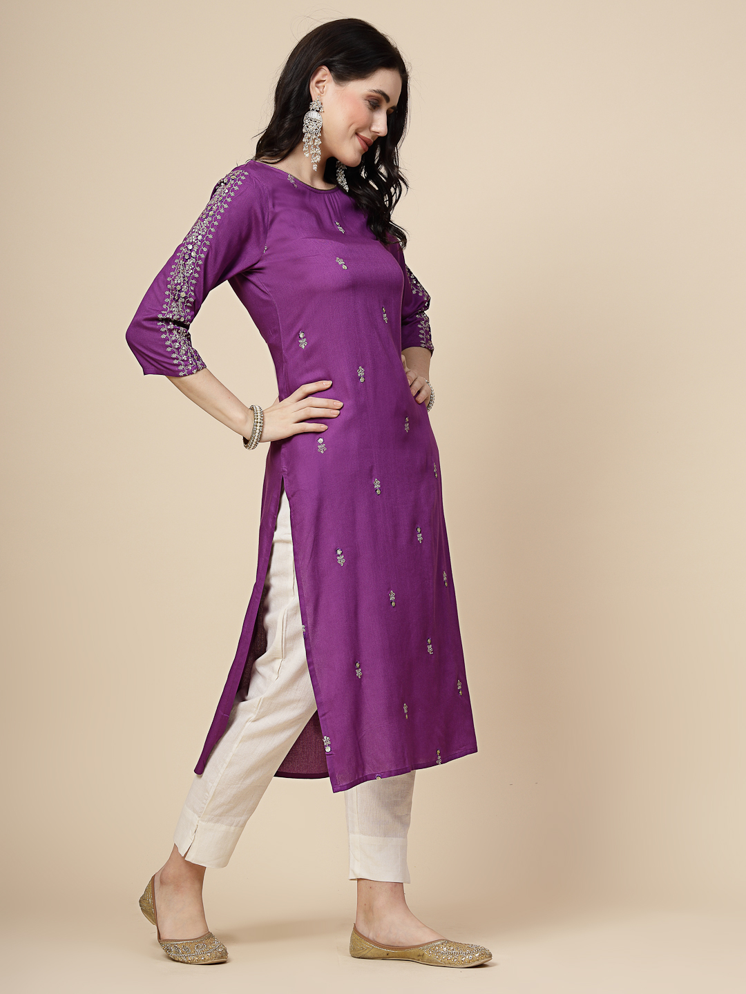 Women Purple Floral Embroidered Sequinned Straight Kurta - WSKP62