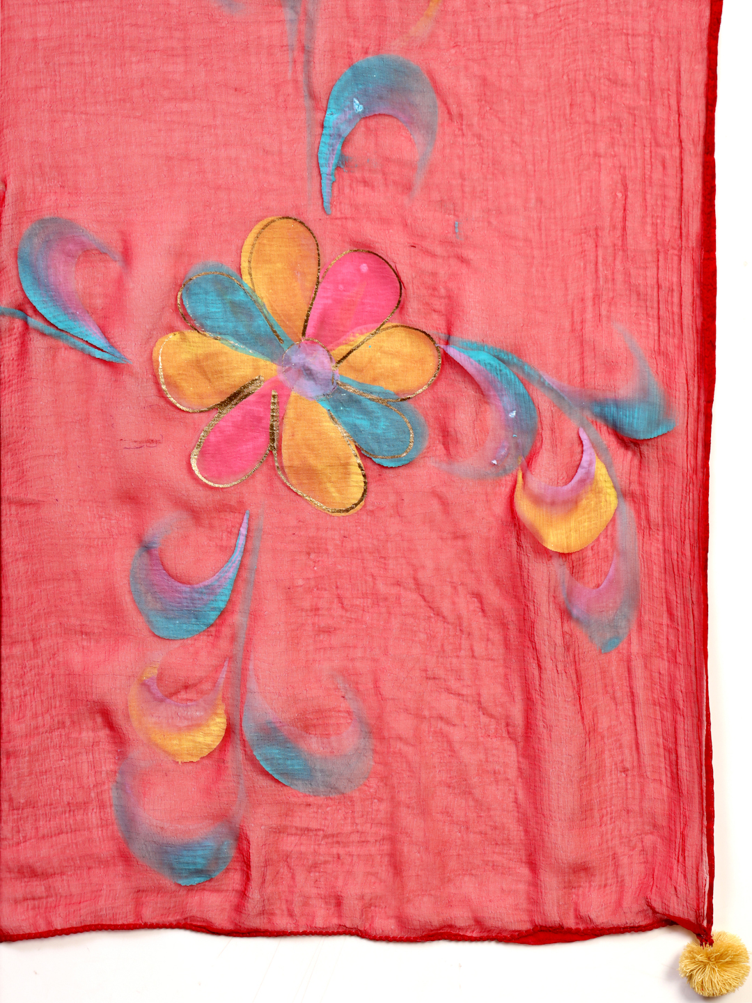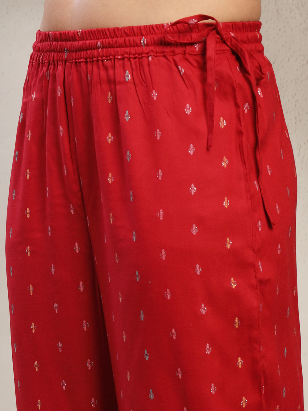 Women Red Color Embroidery Kurta With Trouser & Dupatta Set