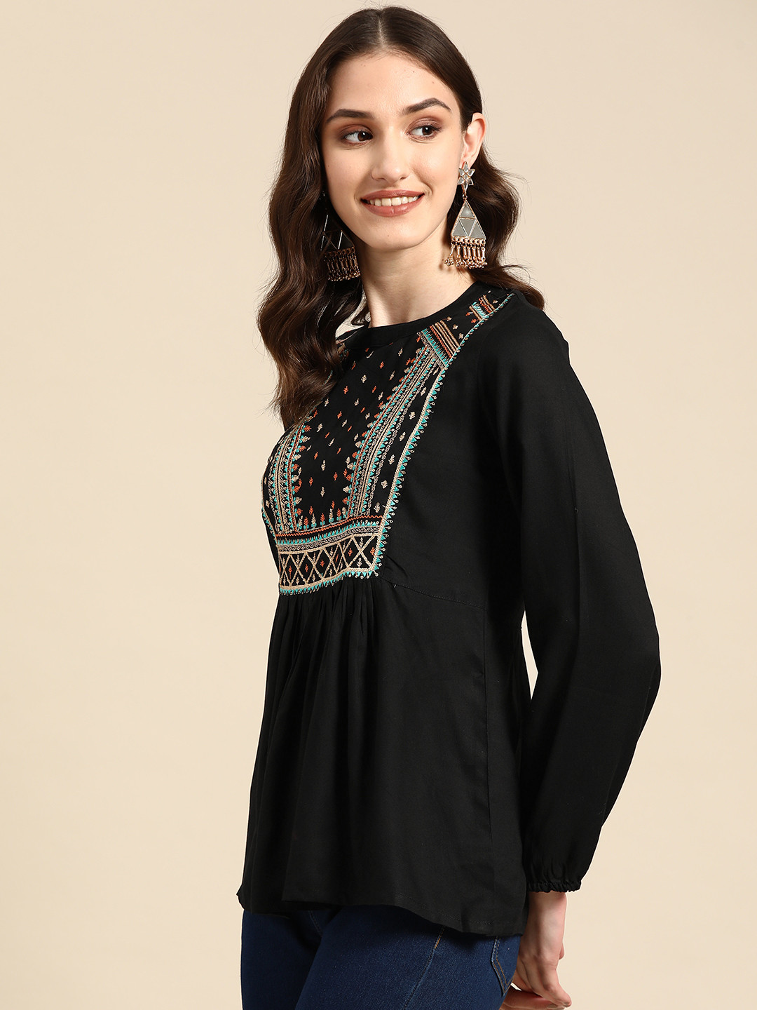 Upgrade your wardrobe with this women black embroidered cotton top featuring elegant thread embroidery and a relaxed fit. Designed for all day comfort, this top is perfect for casual outings, office wear and modern ethnic styling.