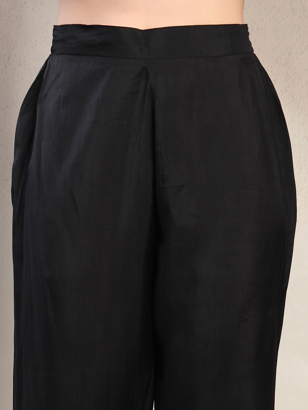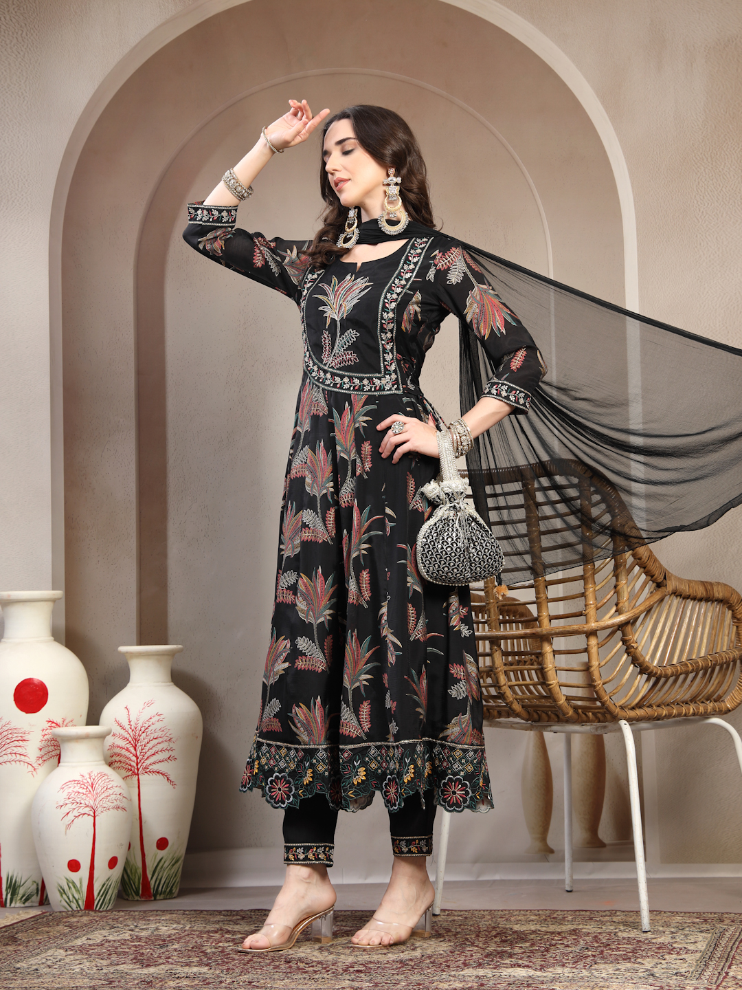 Women Black Color Embroidery Anarkali Kurta Trouser With dupatta set
