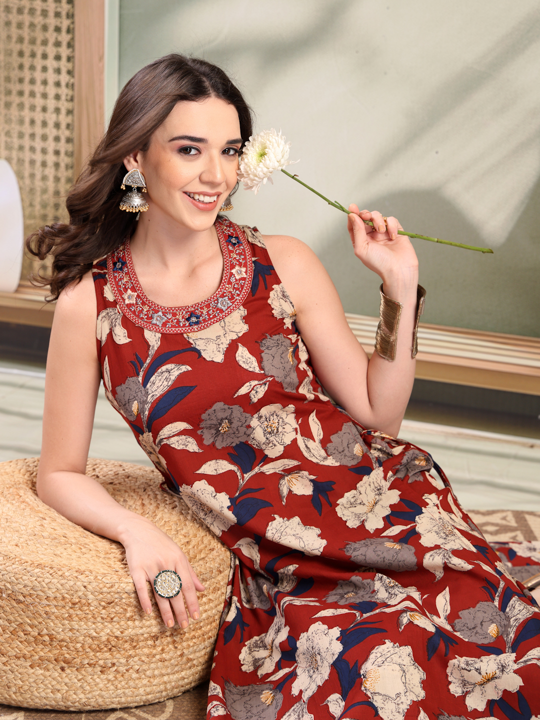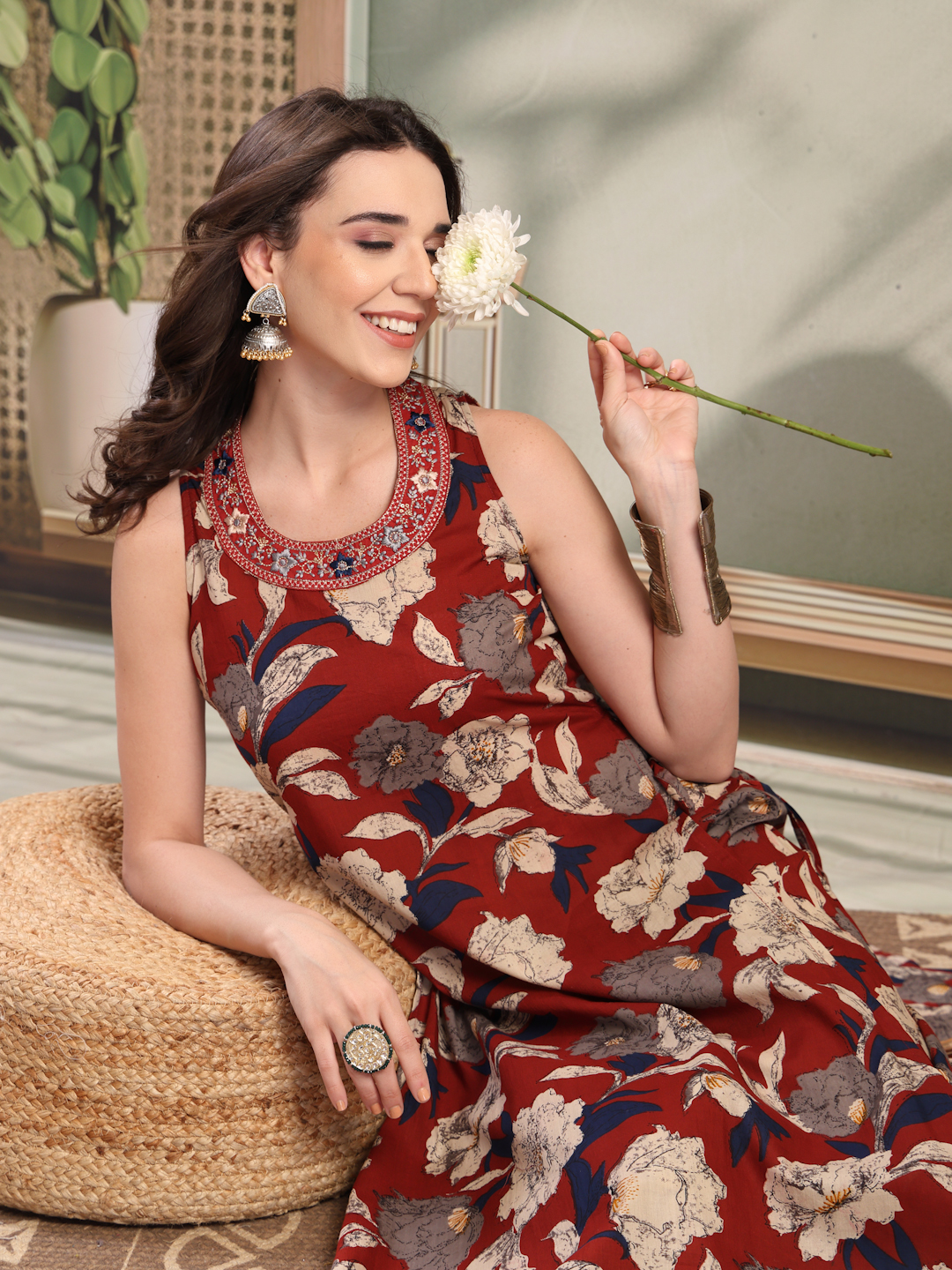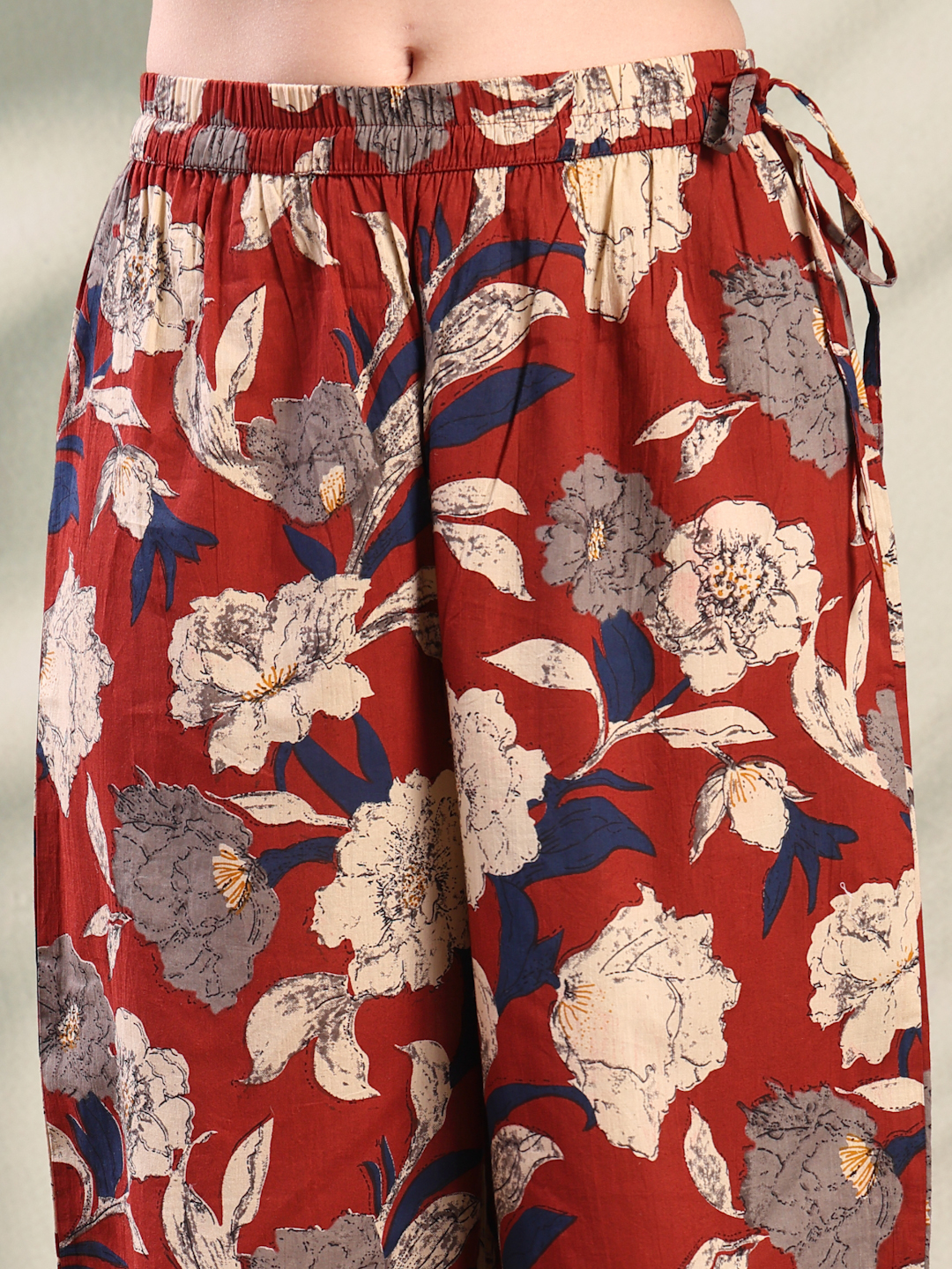 Women Maroon color Embroidery Kurta With Palazzo Set